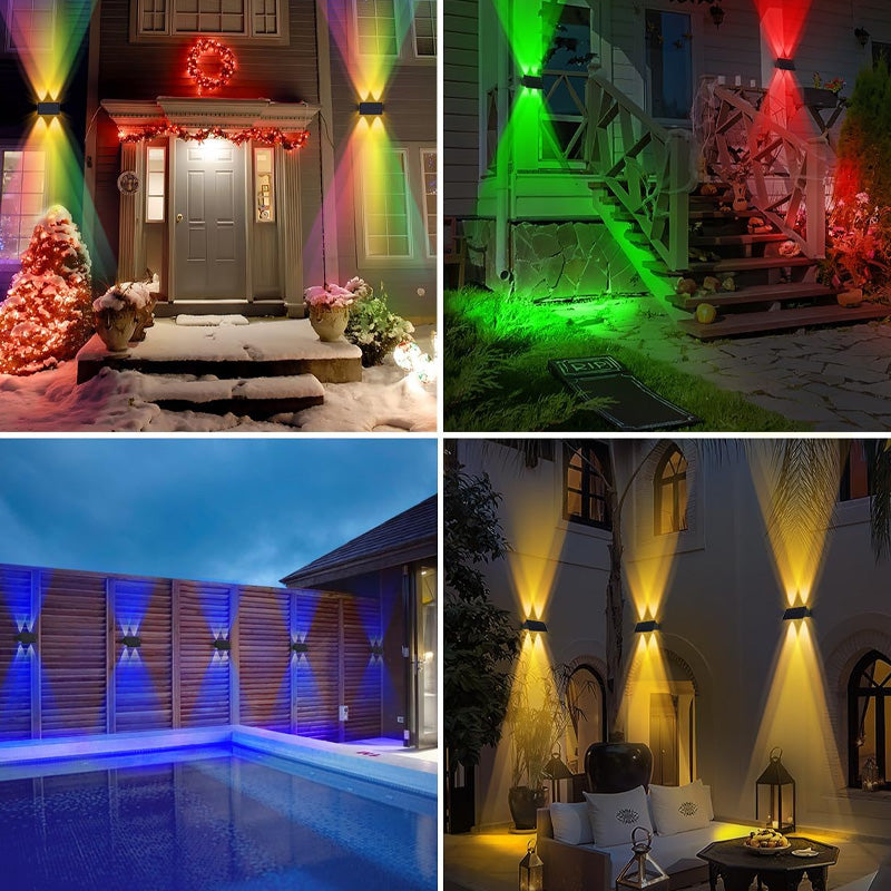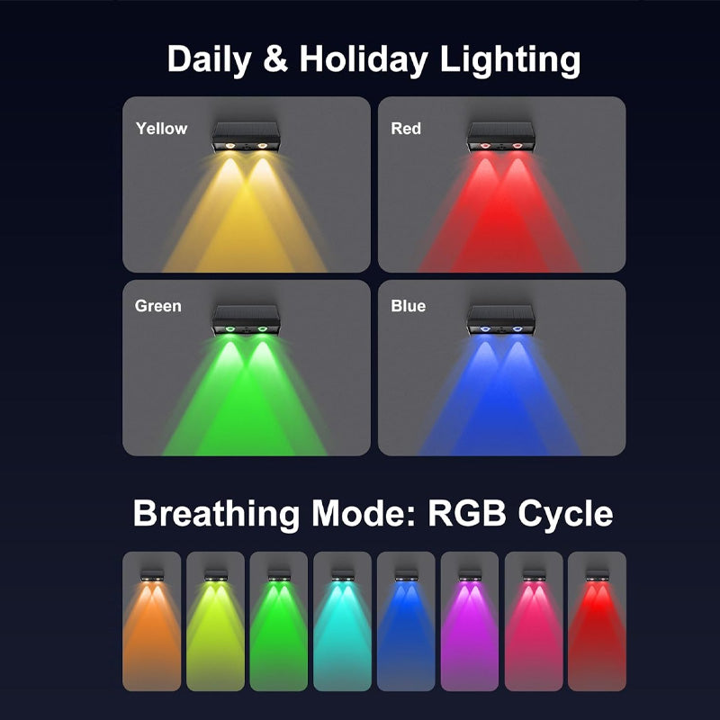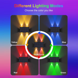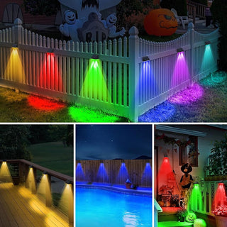 Enjoy Your Colorful Night: Our outdoor solar patio lights offer 4 colors and RGB Gradient, perfect for walls, porches, entrances, pillars, walkways, decks, railings, stairs, patios, backyards various outdoor settings. The color-changing mode creates a delightful atmosphere for outdoor events.