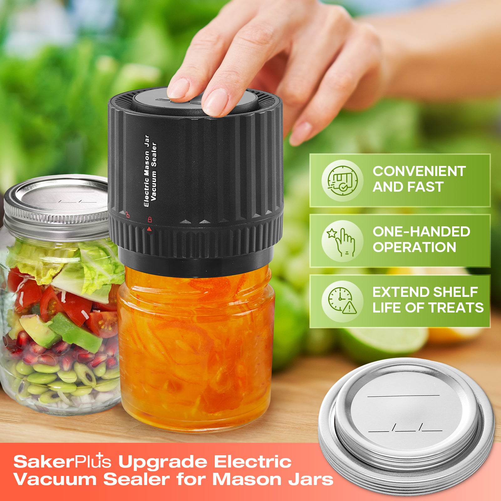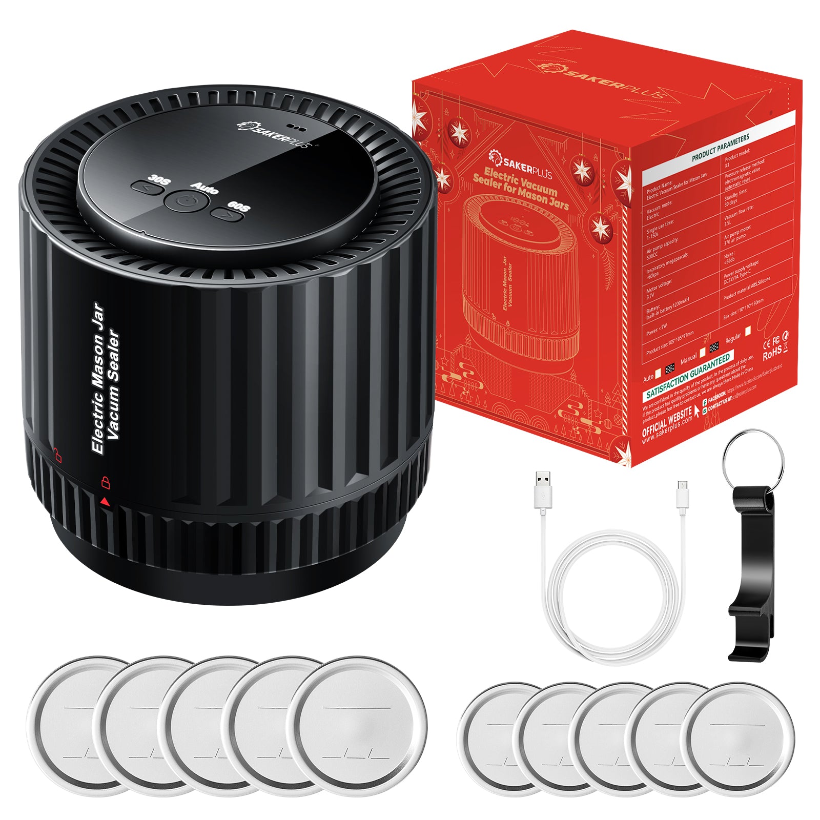 - Mason Jar Sealer Vacuum Kit: The SakerPlus comprehensive kit includes everything you need to get started – electric vacuum sealer,5* wide mouth mason jar lids,5* regular mouth mason jar lids, and instructions. Experience the convenience of SakerPlus electric vacuum sealer specifically designed for mason jars.