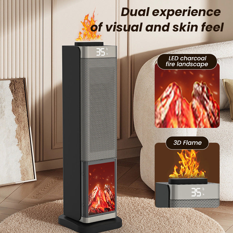 • Stylish ambiance: Enjoy the realistic wood flame effect of our outdoor heater. With adjustable flame brightness across five levels, you can set the mood in any room—whether it’s a relaxing evening or a gathering with company.