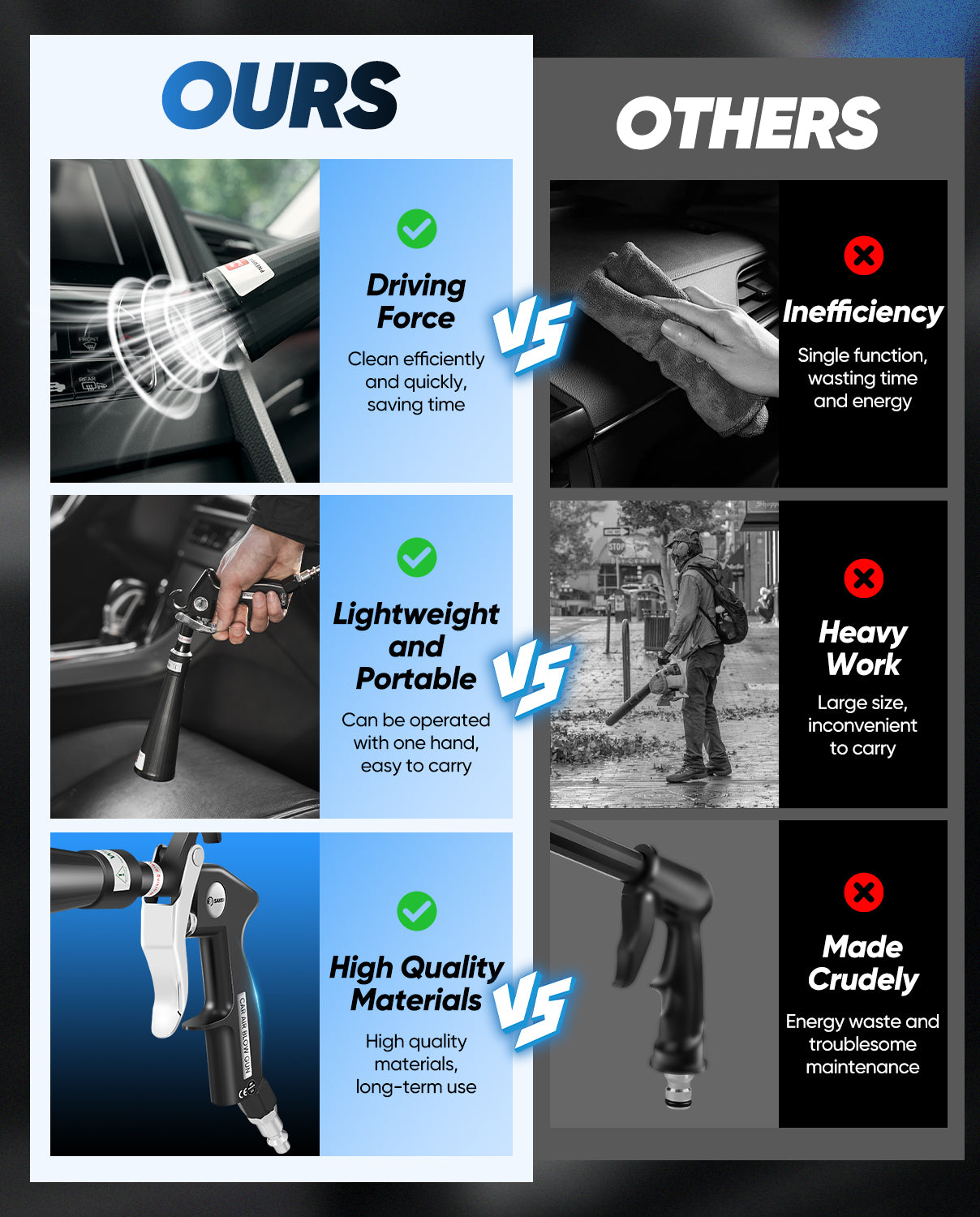 • Multi-Purpose Cleaning Tool: Suitable for cleaning household furniture, car interiors, and factory equipment, meeting various cleaning needs across different scenarios.