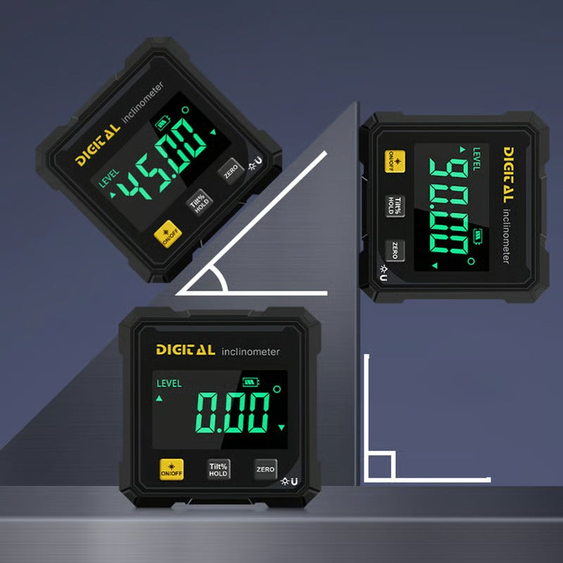Fuerte : carcasa exterior resistente a los impactos y al desgaste diario, operación simple con botones intuitivos: presión corta para encender, presión prolongada para apagar y botón CERO para restablecer el ángulo.
