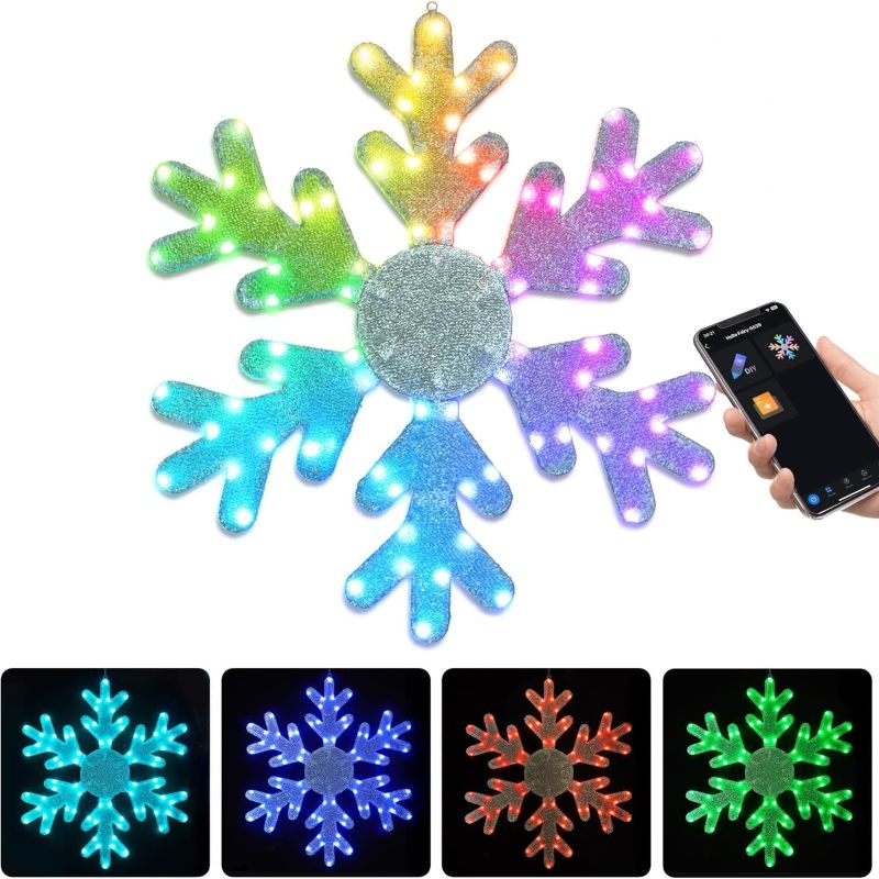 - Ultra-bright 78 led display: Add festive sparkle with this 32-inch snowflake featuring 78 RGB LEDs. Perfect for outdoor displays, walls, gardens, or yards, bringing a magical glow to your Christmas decorations.