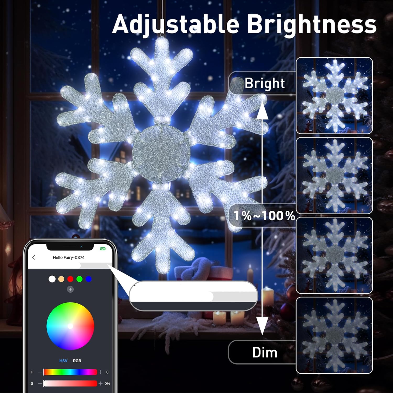 - Diy colors and custom lighting: Create giant snowflake light patterns in seconds using the Hello Fairy app. Choose from 16 million colors to design unique outdoor themes for your porch or window. Save scenes like Frost Blue Winter and share them with friends for standout holiday décor.