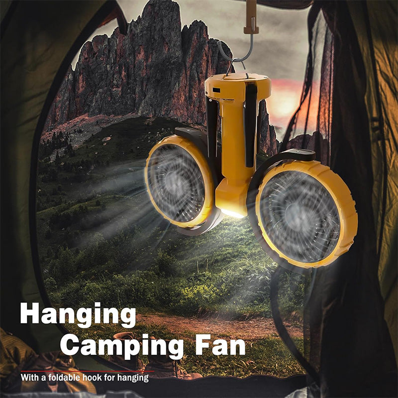 Hanging Tent Fan: With a collapsible hook, this cordless fan is easy to hang in tents or elevated areas. Note: It weighs 1.87 lbs, making it sturdy yet portable.