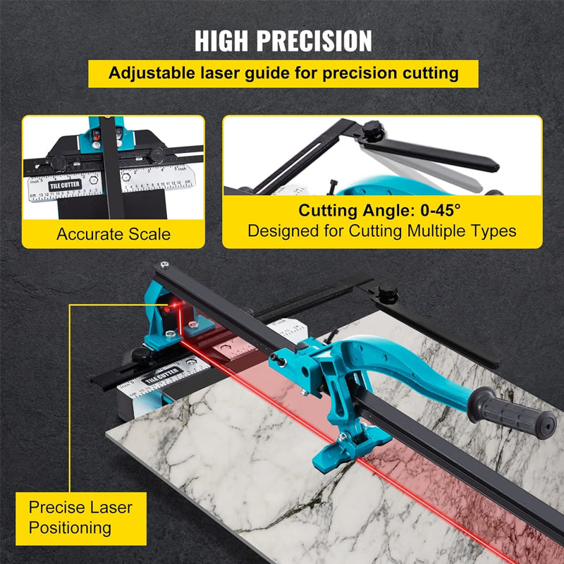 This tile cutter is a game changer for my home renovation project! The laser guide actually works surprisingly well - no more guessing where the cut will land. The built-in oil reservoir keeps things smooth, though I wish they included a small bottle of oil with it. Solid construction, definitely worth the price.