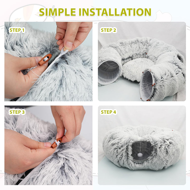 2-in-1 Cat Tunnel Bed: By connecting the button, the cat play tunnel and cat bed are combined into one, allowing our cats to rest comfortably after playing.
