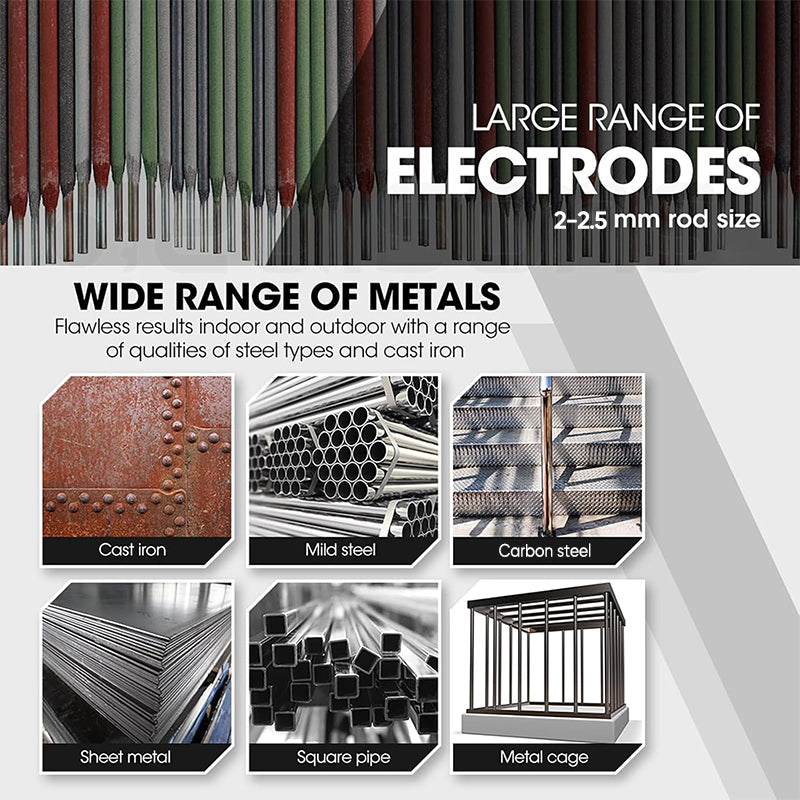 • 2-in-1 welder: 20-120 amps suitable for welding thin workpieces and easy DIY projects, with ideal performance for 2-2.5mm rods. You can choose stick or lift tig mode as you want. Suitable for welding iron, mild steel, and steel.