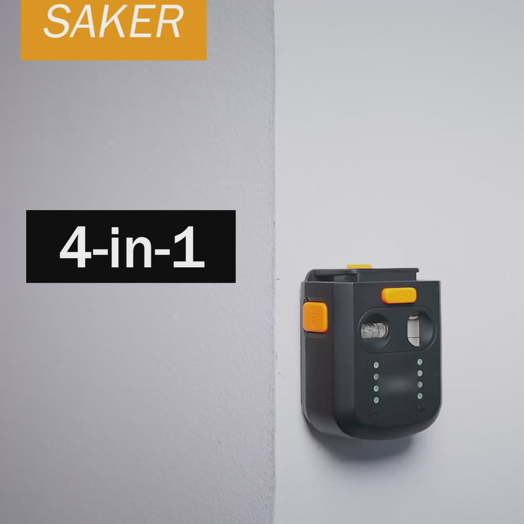 SAKER 3-in 1 laser level adheres directly to walls without the need for a stand. Featuring horizontal and vertical laser lines with a 131ft laser range, SAKER picture hanging laser level delivers swift precise measurements in construction, renovation, DIY projects, etc.