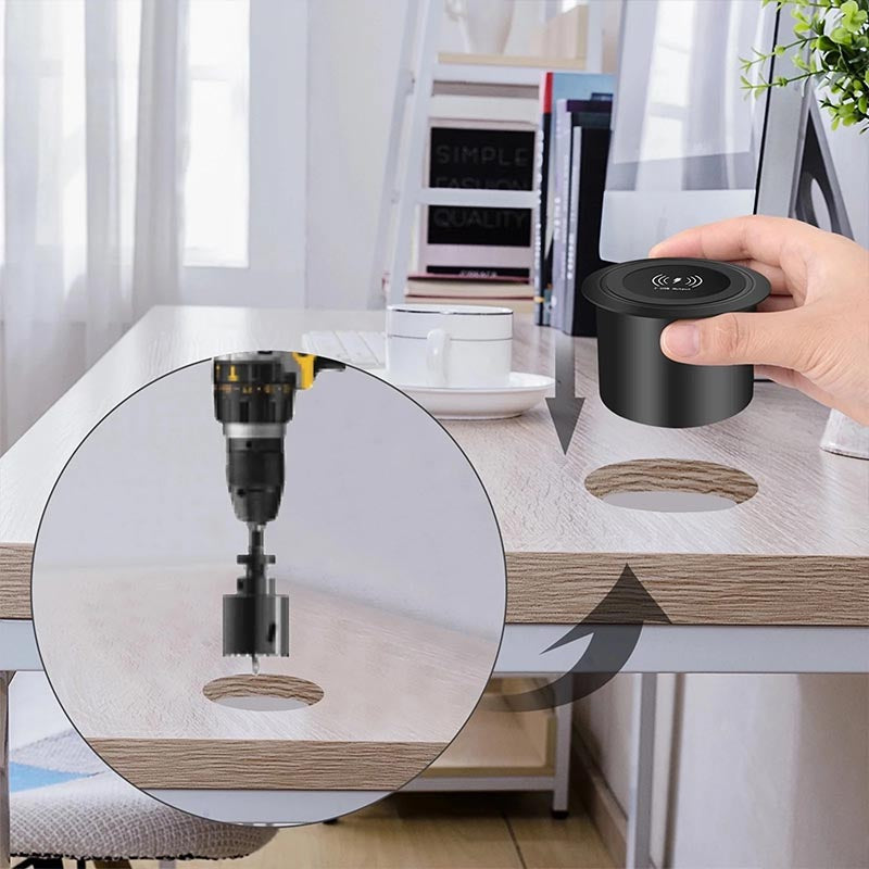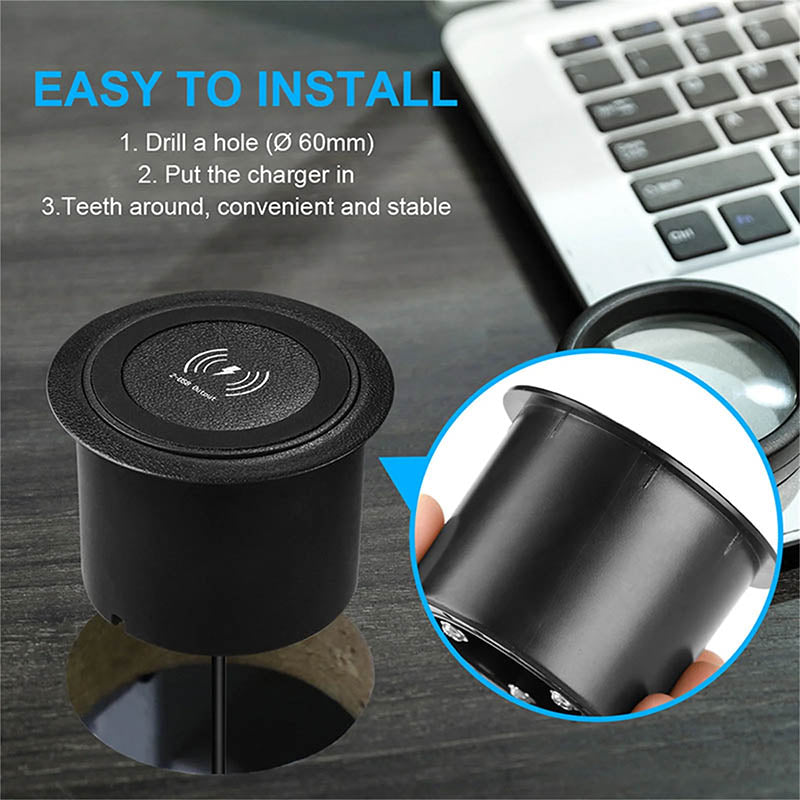 Use in various occasions: In addition to being installed on the table, the embedded desktop charger can also be used in different places like other chargers. 10W fast wireless charging.
