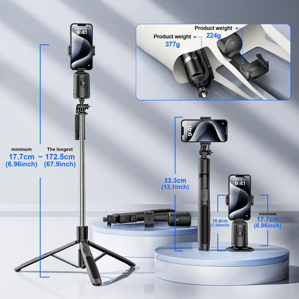 Giro de 180° y ángulos ajustables: El soporte admite una inclinación vertical de 180°, lo que permite alternar fácilmente entre la cámara frontal y la trasera para mayor flexibilidad. Este diseño de ángulo ajustable ayuda a lograr un encuadre óptimo, imágenes más nítidas y perspectivas más dinámicas para retratos, paisajes y grabaciones creativas.