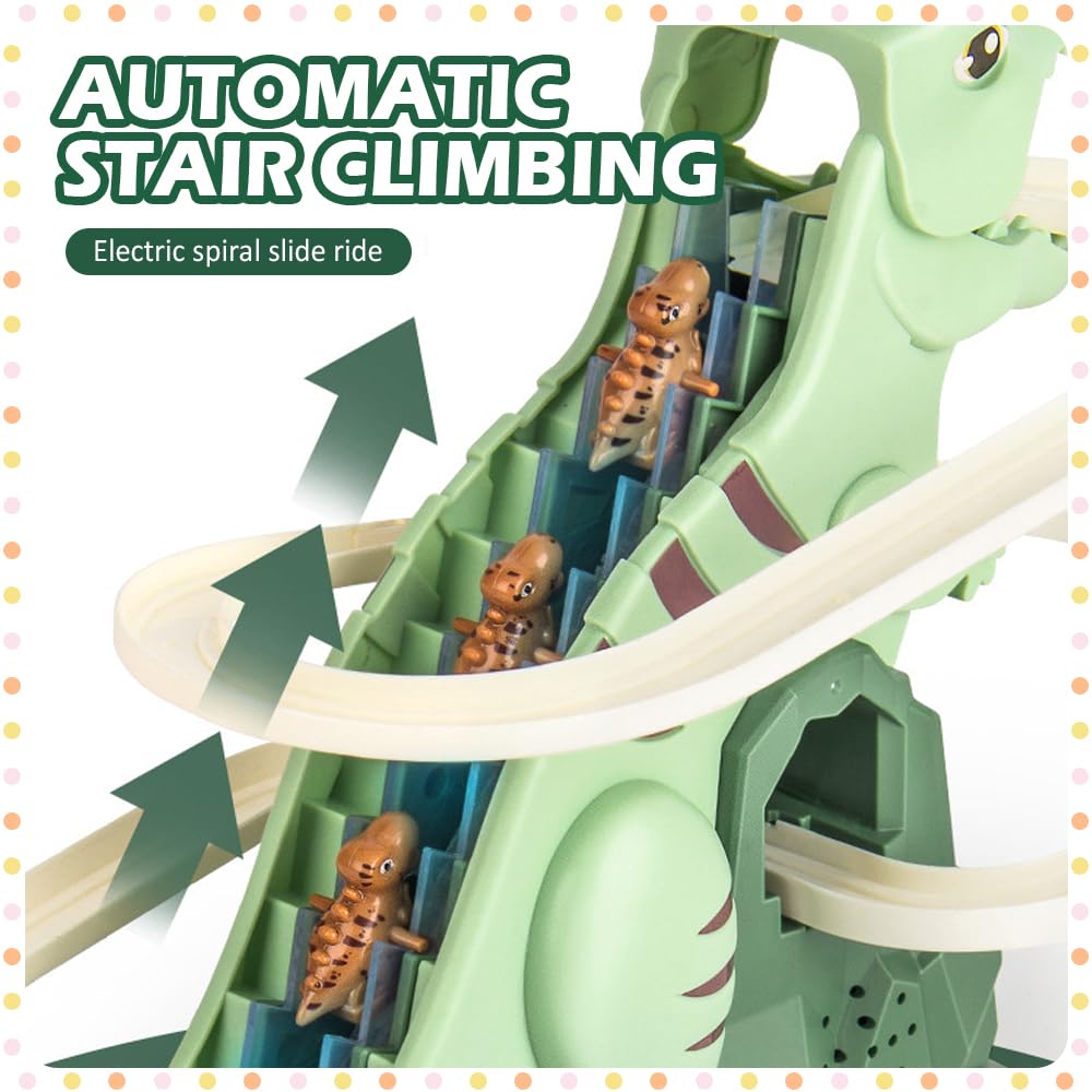 Smooth climbing and sliding action: Three little cute dinosaurs independently climb stairs and slide down smoothly, ensuring consistent motion without jams. This feature provides endless entertainment while maintaining smooth performance, making it ideal for extended play sessions.