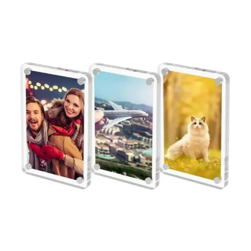 • clear acrylic frame: Made from high-quality scratch-resistant acrylic that provides a crystal-clear, distortion-free display and allows quick photo changes with a magnetic closure.