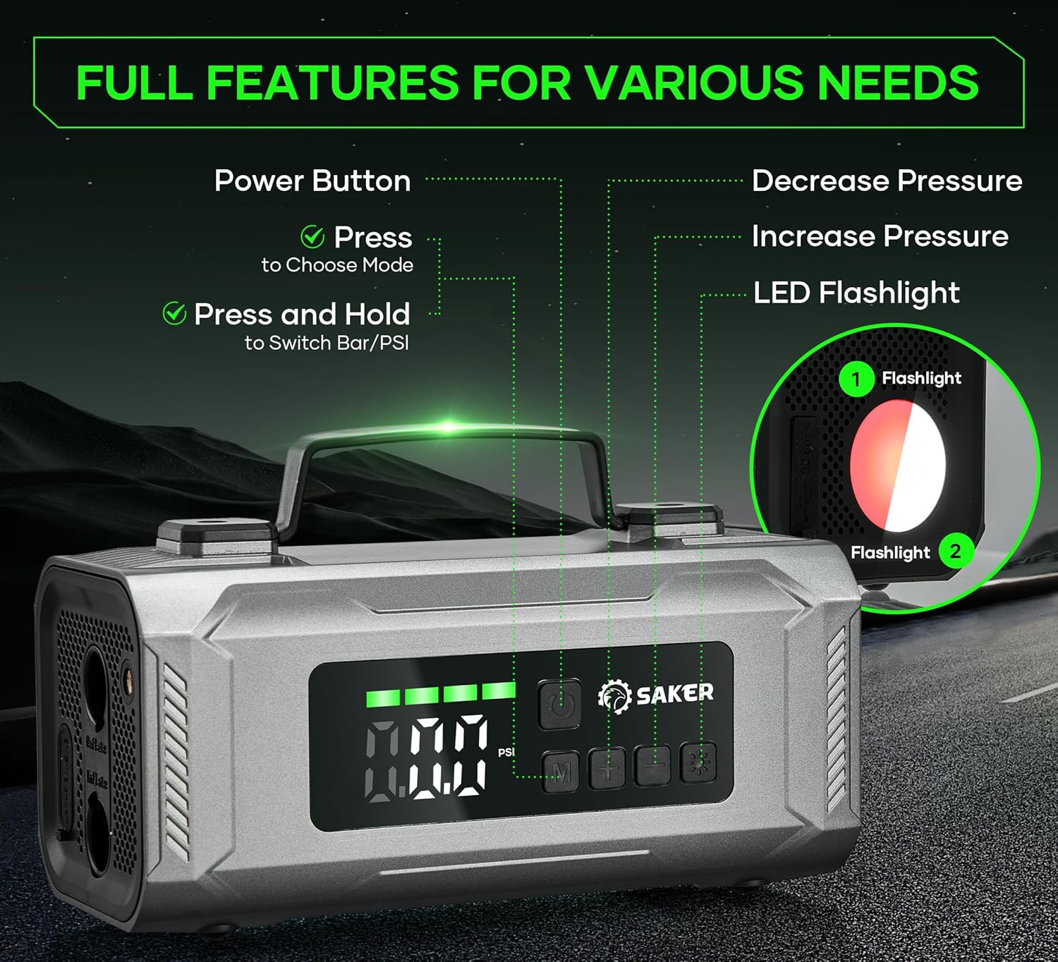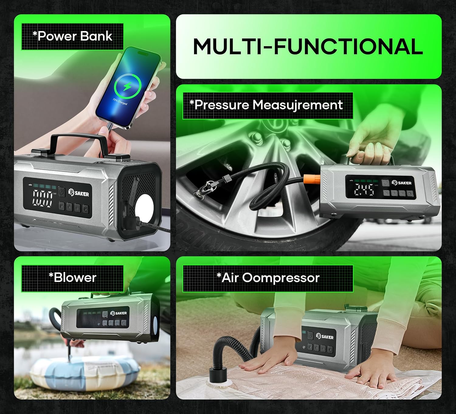 ¡No solo el arrancador de batería, sino también las excelentes herramientas multifuncionales para autos! ¡Puedes confiar en Saker!