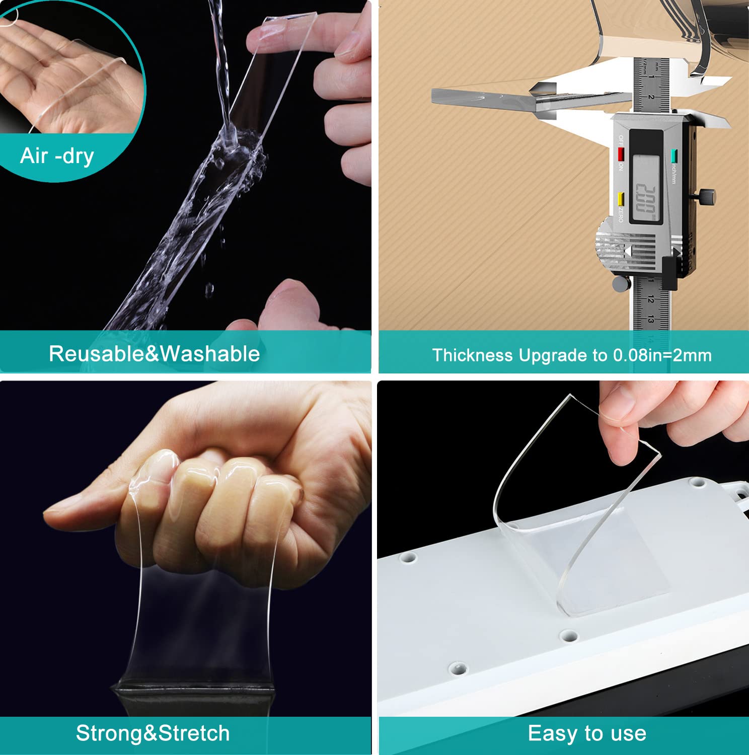 Removable & washable without residue: Our two sided tape is traceless and easy to remove from smooth surfaces without damaging paint or leaving sticky residue. Simply rinse with water to reuse multiple times.
