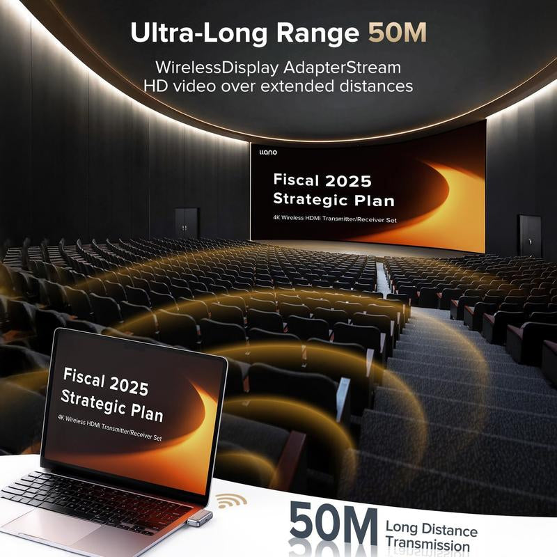 • Wireless HDMI transmitter and receiver: Plug and play, the wireless HDMI transmitter and receiver offers true plug-and-play functionality without the need for messy cables, Wi-Fi, apps, Bluetooth or complicated setup. Bluetooth HDMI easily connects to devices in seconds, while wireless HDMI technology ensures zero latency for smoother operation and a tidy workspace while delivering seamless, high-quality streaming.