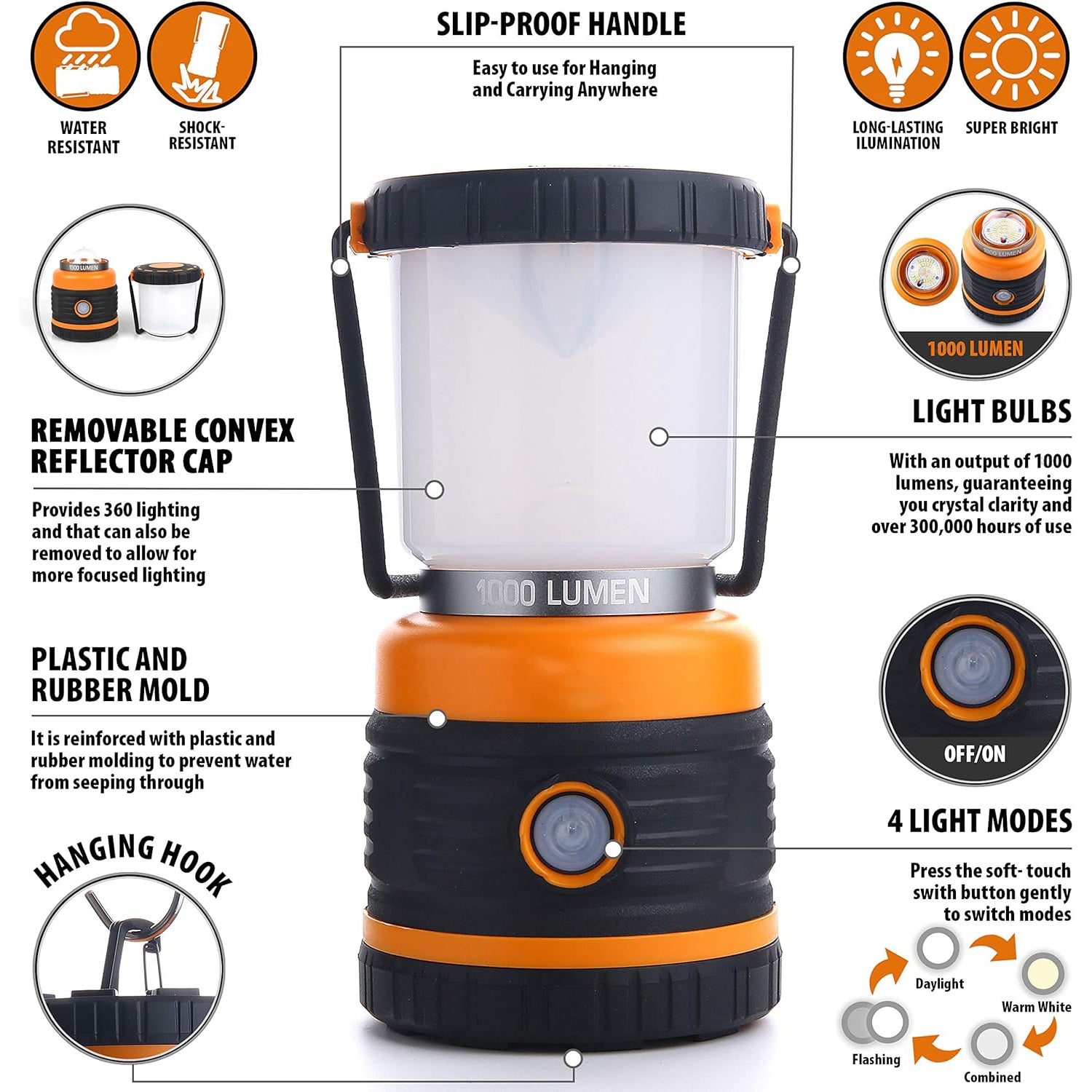 • Water-Resistant: The LED camping lantern is designed with waterproof construction, making it ideal for outdoor activities like camping and hiking. It’s also a great addition to your emergency or survival kit due to its durable and reliable design.