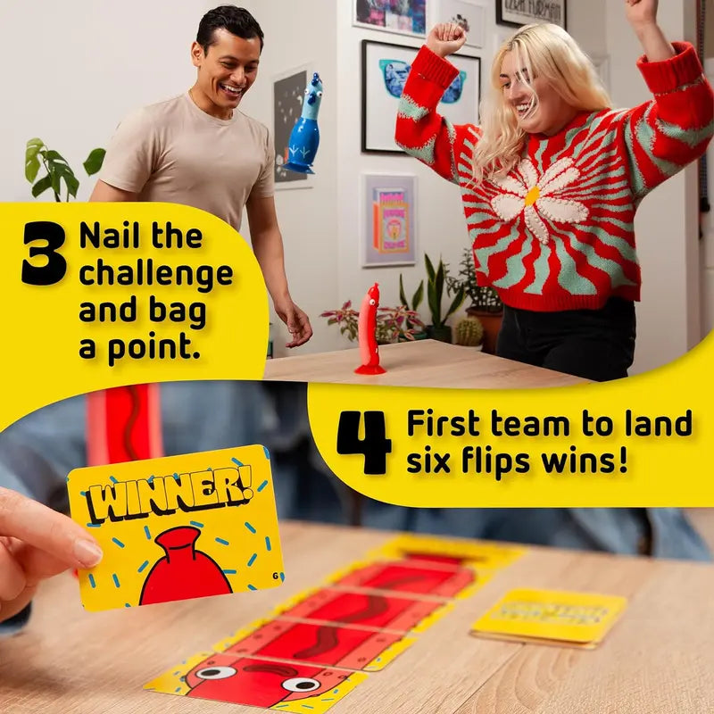 Time: Play the same card as your opponent to trigger the fast and frantic Flip-o-Rama. First team to nail a landing wins in this funny family game for adults and kids.