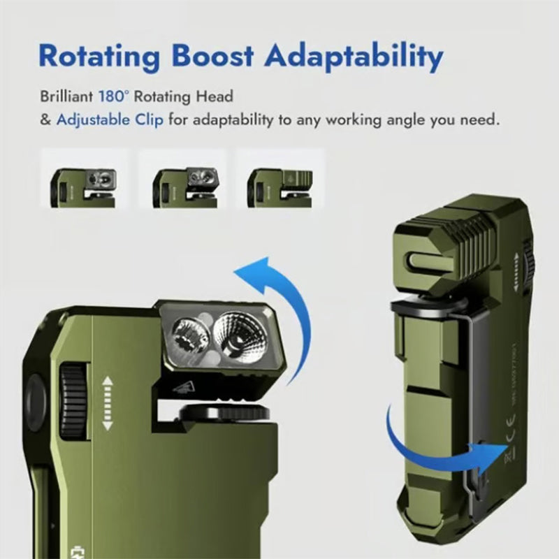 Flexibilidad : cuenta con un cabezal giratorio de 180 grados y un clip ajustable que permite el uso con manos libres en diversas situaciones.