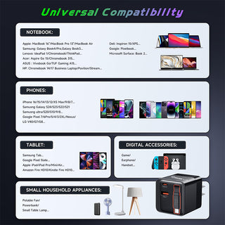 Powerful 65W GaN 3 Charging: This wall charger uses advanced GaN 3 technology to deliver up to 65W of power for ultra-fast and efficient charging of laptops, tablets, smartphones, and other electronic devices, ensuring rapid and efficient power delivery.