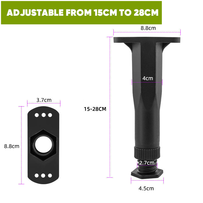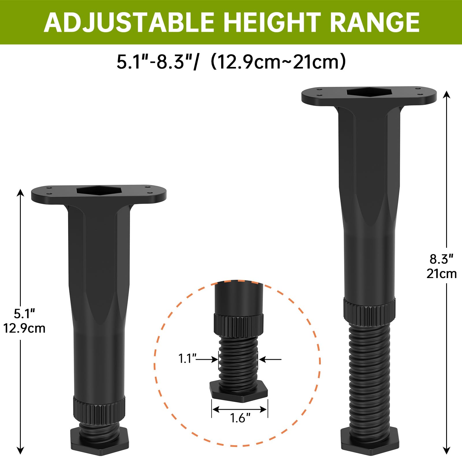 - Pack includes: Bed furniture support legs with adjustable height * 6. The adjustable range of our furniture legs is so large that having them is equivalent to having furniture legs of various sizes at the same time, making them more practical due to the adjustable height.