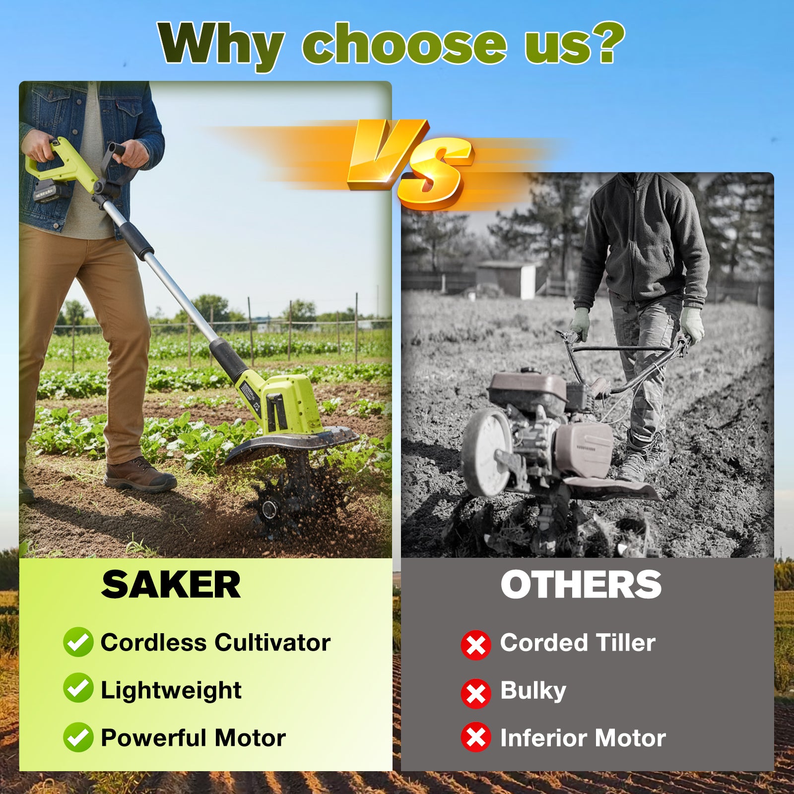 Comodidad inalámbrica, eficiencia ecológica : sin gas, sin aceite, sin emisiones, no requiere mantenimiento y su diseño de bajo ruido proporciona una experiencia de labranza más silenciosa y cómoda.