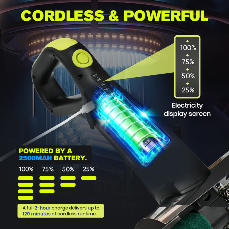 • Cordless & rechargeable for ultimate convenience: Enjoy complete freedom of movement without being tethered by a cord. This rechargeable electric spin scrubber have 2500mah and 2 hours lifetime is perfect for cleaning your outdoor grill anywhere, from the backyard patio to the campsite. A must-have for modern grilling tools.