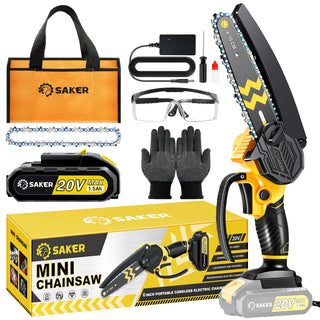 - Impressive Performance: Don't let its small size fool you. The Saker 6-inch mini chainsaw cordless packs a punch with its powerful motor and sharp chain, effortlessly cutting through branches, logs, and small trees. It's the ideal tool for pruning, trimming, and DIY projects.
