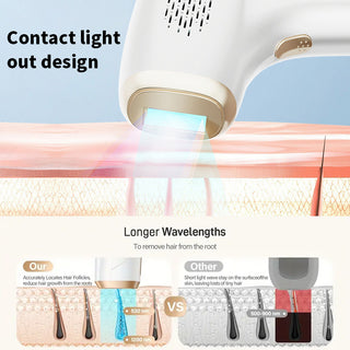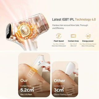 Effective Laser Hair Removal Permanent: The IPL hair removal device uses Intense Pulsed Light (IPL) technology to effectively reduce unwanted hair growth. It targets melanin in the hair follicle, but may not be effective on red, blonde, grey, and white hair.