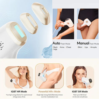 2 Flash Modes: The laser hair removal device features both auto and manual modes, making it suitable for different body areas. It is recommended to use 2-3 times per week during weeks 1-4, and 1-2 times per week from weeks 5-12. After 12 weeks, adjust usage according to your needs.