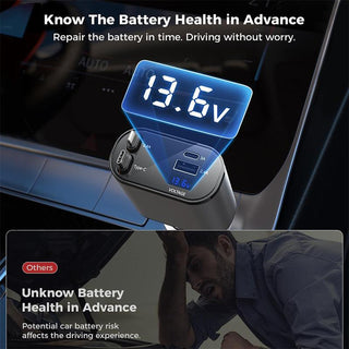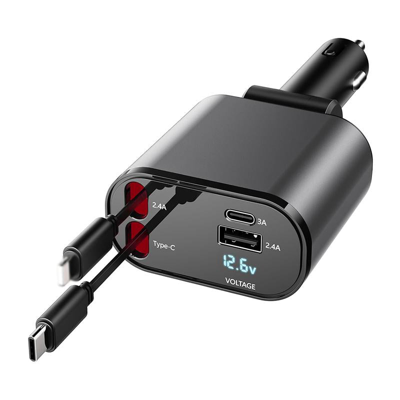 The car charger usb has a voltage digital display to show the voltage, you can check the car's battery status at any time, when the input voltage is less than 11.5V, the display screen will flash to prompt. The car charger with retractable cord has overcharge, overcurrent, overvoltage, temperature control and short-circuit protection functions, which can protect your device battery from overcharging damage. The shell is made of aluminum alloy + ABS material, which has good corrosion resistance and wear resistance, and the applicable life is longer.