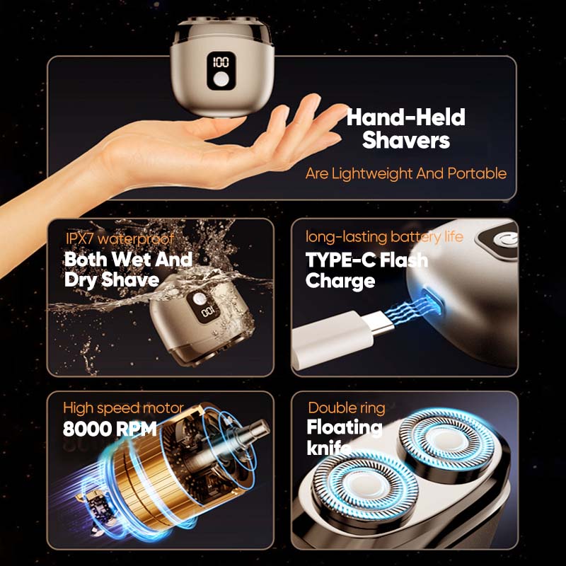 High-Speed Motor with 8000RPM: Equipped with a powerful motor running at 8000RPM, this portable shaver delivers an efficient and fast shaving experience. Whether you're at home or on the go, it ensures a clean shave with minimal effort, saving you time while providing a smooth and comfortable result.