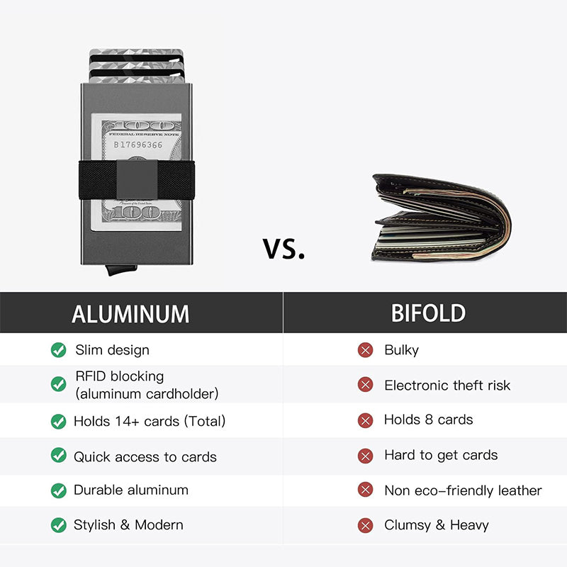 Durable Material for Long-Lasting Use: Made from high-strength 6061 aerospace-grade aluminum alloy, impact-resistant and pressure-proof, maintaining its shape over time. Scratch-resistant and wear-proof, eliminating the fragility of traditional wallets while being eco-friendly and long-lasting.