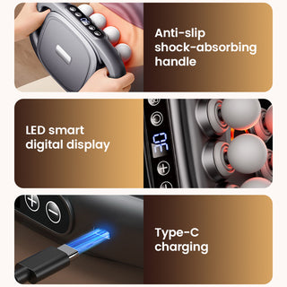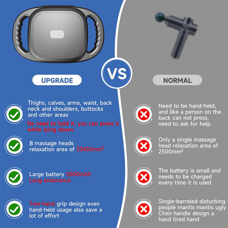 • 8 massage heads & unique handle design: This massage gun has 8 massage heads, which provide deeper massage and a larger massage area, which is equivalent to using eight single-head massage guns at the same time, greatly improving the massage efficiency. In addition, the handle of the massage gun also has an anti-slip and shock-absorbing design, making it easy to hold it to massage your legs, feet, waist and other parts.