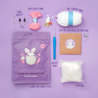 Crochet Kit For Complete Beginners: The SAKER crochet is the perfect kit for complete beginners. Along with Easy Peasy Yarn and easy-to-follow video tutorials, you'll receive every other tool you'd need to begin crocheting with our kits; JoJo The pre-started yarn, eyes, a yarn needle, a crochet hook, stuffing, and a bag that holds it all.