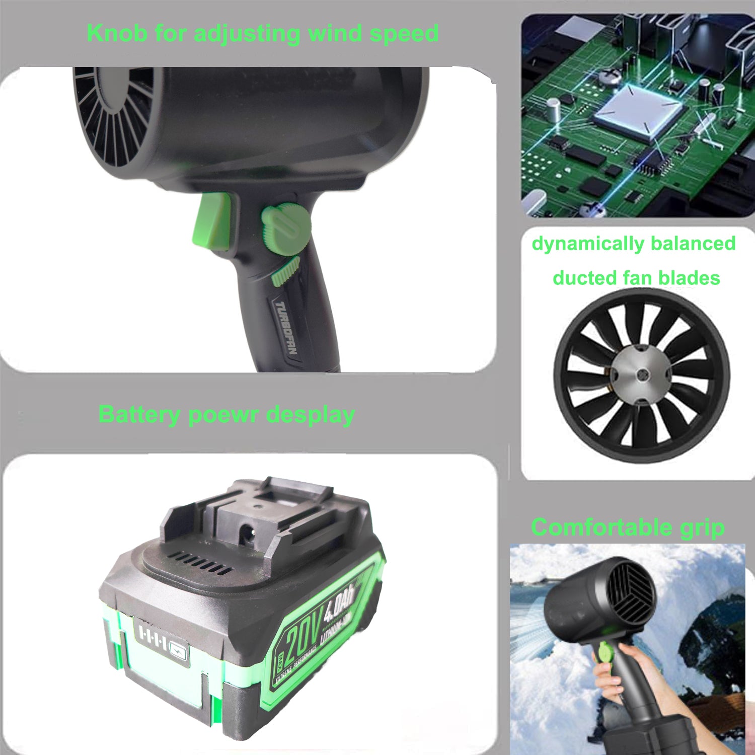Powerful Brushless Motor: Equipped with a blowing power of 1200g and a maximum speed of 45,000 RPM, delivering exceptional wind force and significantly enhancing efficiency.