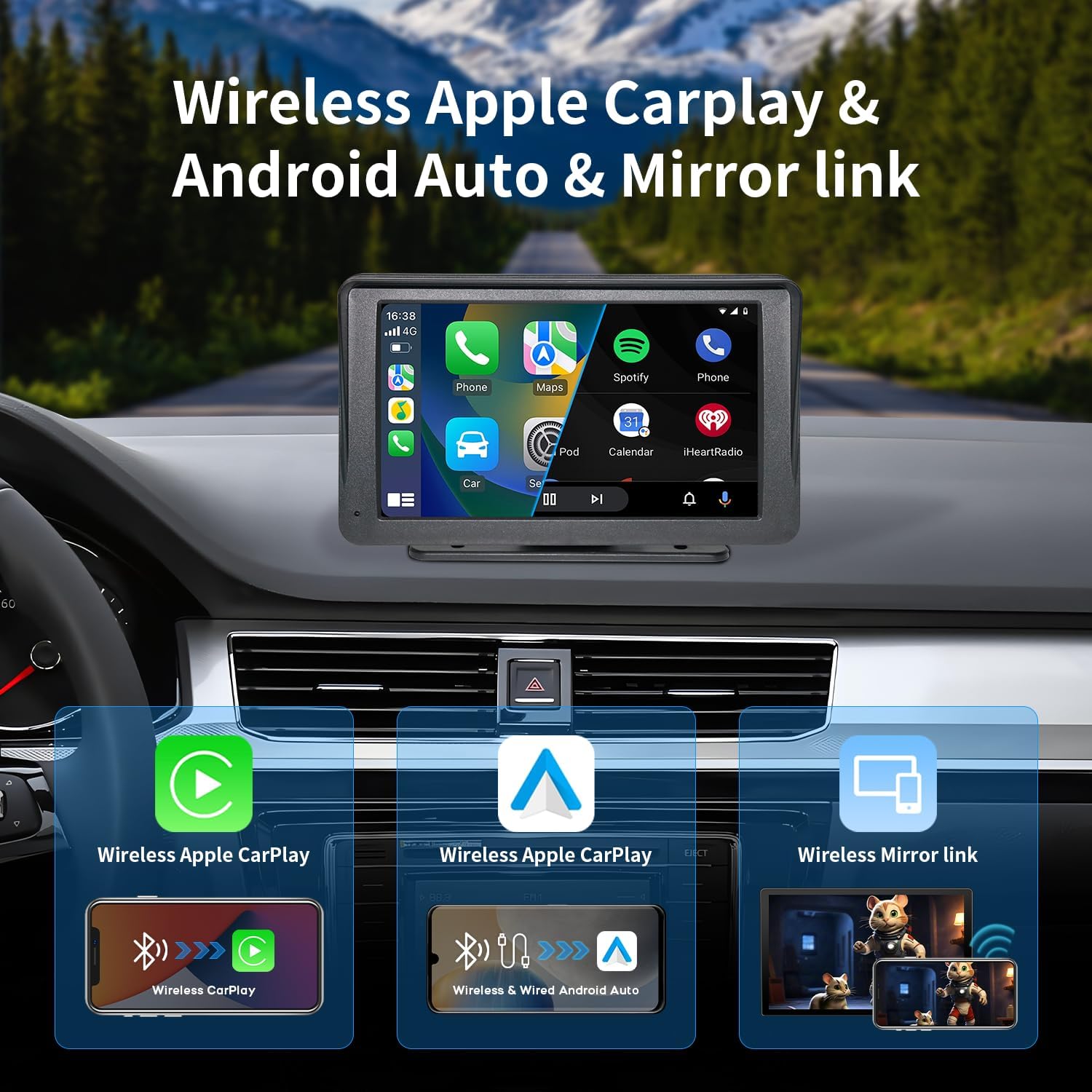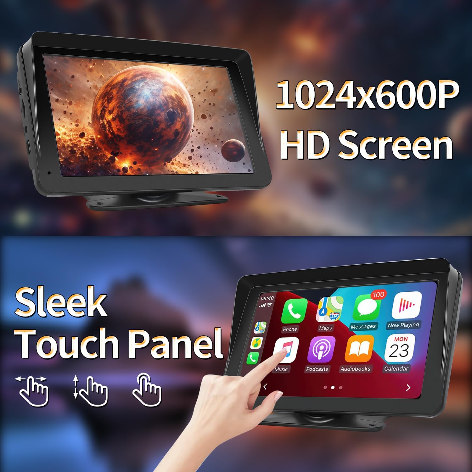 - Smart Voice Control & Accurate Smart GPS Navigation: Stay focused on the road with hands-free convenience. The built-in microphone allows you to effortlessly interact with Siri or Google Assistant, enhancing your driving experience with safety and ease. Navigate with confidence using our portable Apple CarPlay screen for car, which offers precise real-time positioning and GPS navigation. Display real-time map information in an expansive widescreen format, eliminating the need for frequent updates or additional costs.