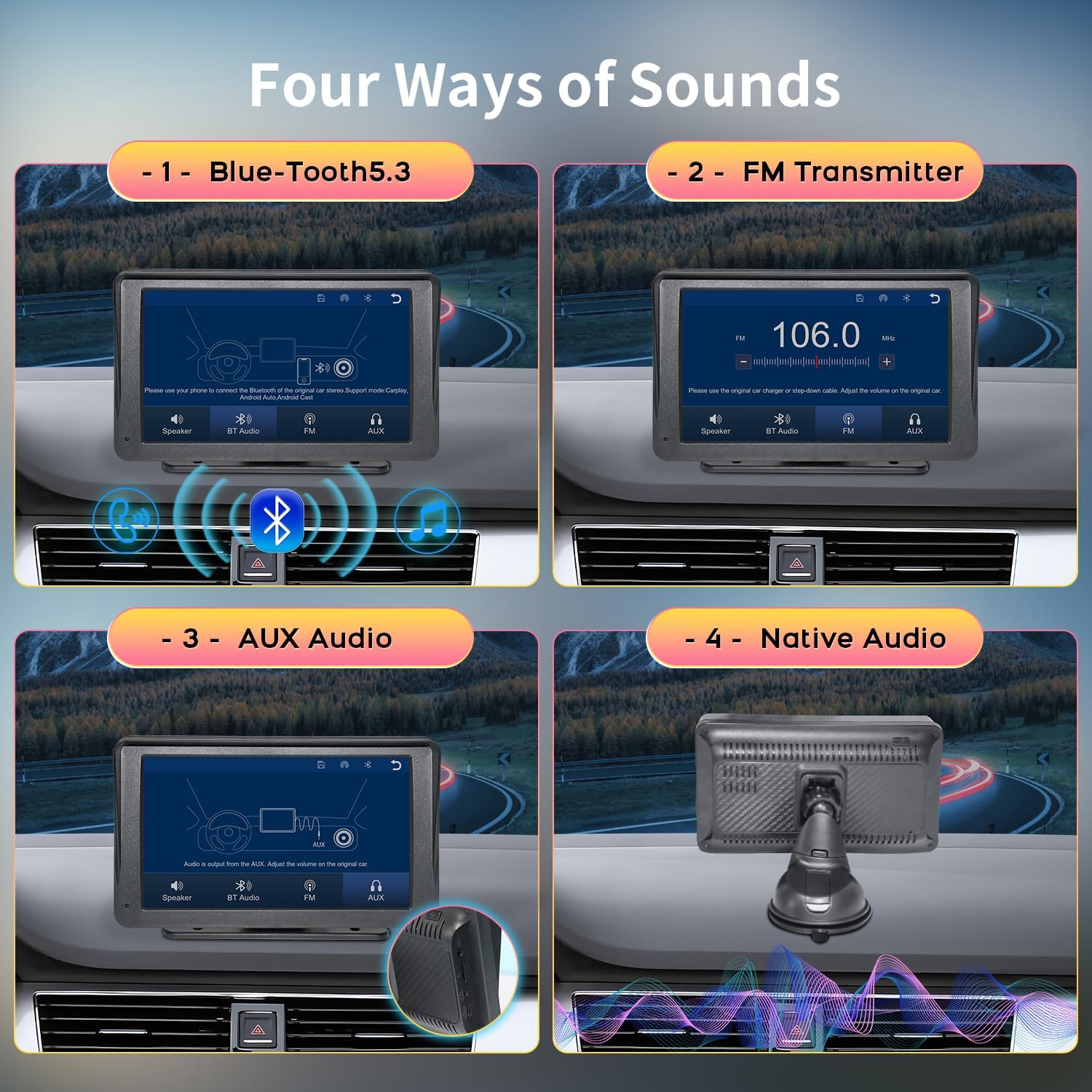 - Bluetooth 5.3 car radio Upgrade: Enjoy a seamless connection with Bluetooth 5.3, providing crystal-clear car audio directly to your car stereo system. With FM and AUX outputs, our device is compatible with all your audio devices for an enriching sound experience.