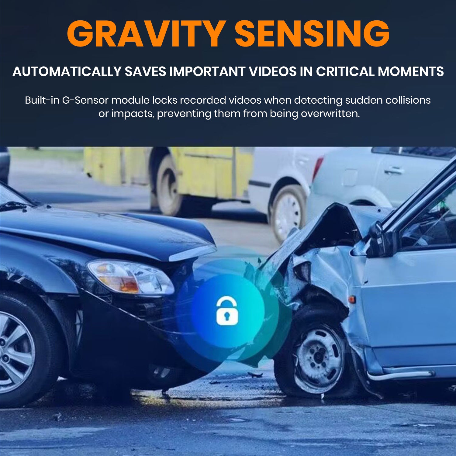 • Real-time recording, ensuring driving security: Built-in G-Sensor detects collisions or sudden movements, automatically locking videos, while loop recording overwrites old footage to ensure critical moments are never lost.