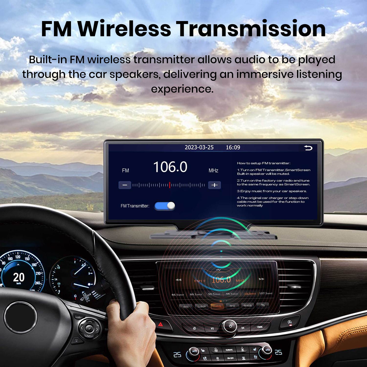 • HD touchscreen, finer image quality for better comfort: Equipped with a 10.26-inch IPS HD screen with 1600×600 resolution, supporting high-definition rearview camera for clearer images and a wider field of view.