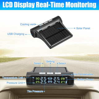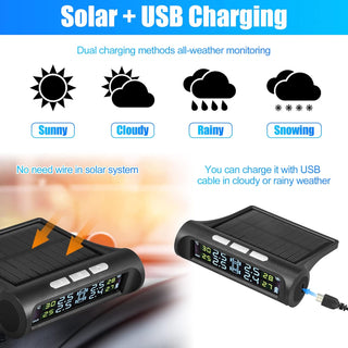 Tire Pressure Monitoring system have two charging methods to ensure higher charging efficiency. TPMS is equipped with quality and durable solar panels, which can extend the use time. We also set up a USB port to the TPMS, when there is no sunlight, you can use the USB charging cable to ensure that the solar tire pressure monitor system can work continuously. The tire pressure monitor can be placed on the center console, saving space.