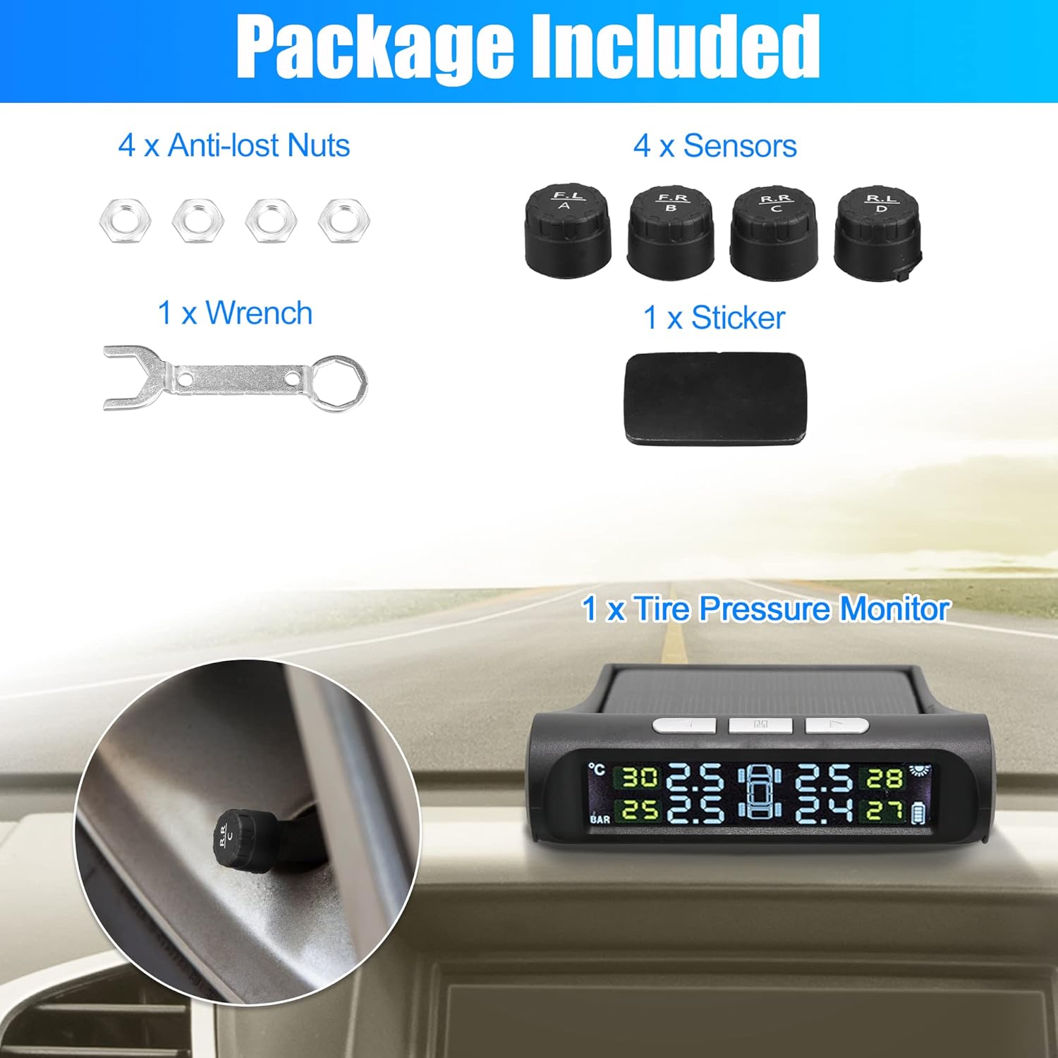 Includes instruction manual, in the first installation, please charge the monitor, and switch on the display, then insert the sensors one by one; after 5-10 minutes of driving, all data will be shown. The sensor must be activated by motion. Suitable for many 4 wheel vehicles, such as cars, SUV, MPV ,Sedan, Wagon, etc,.