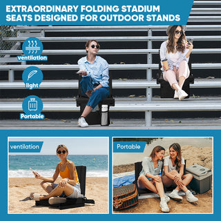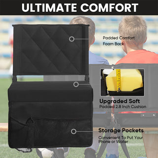 - Comfortable Thick Cushion & Back Support: Saker bleacher chairs with upgrade thick padded cushion & back provide you with comfortable support. Just lean on the stadium seats and enjoy your leisure time.