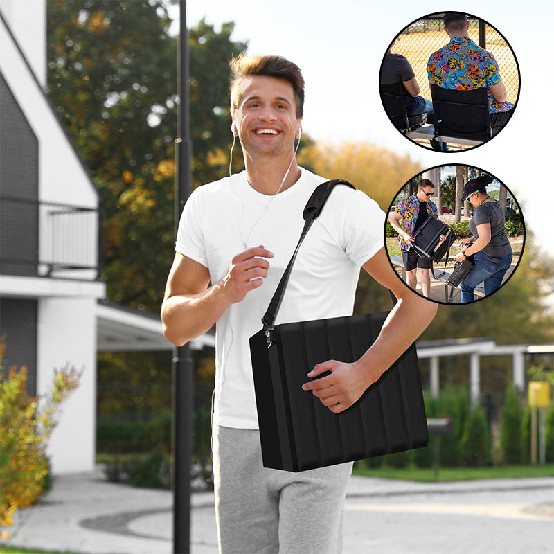 - Foldable & Portable: The portable stadium seats chair folds up easily and comes with a detachable shoulder strap for easy transport. When folded it is easy to carry on the shoulder strap or hold the built-in handle to move it.