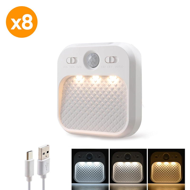 Convenient charging: This hallway motion sensor light includes rechargeable batteries and supports charging with a power adapter or portable charger (not included). The night light glows red while charging and turns green when fully charged, and the package comes with a USB charging cable.