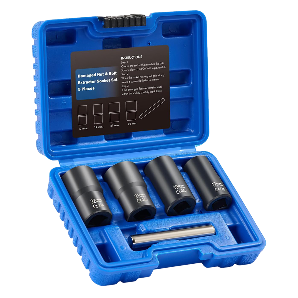 Designed: Designed For Damaged Lug Nuts And Bolts. Removes Stripped, Rounded, Or Rusted Lug Nuts And Bolts In 17mm, 19mm, 21mm, And 22mm Sizes.