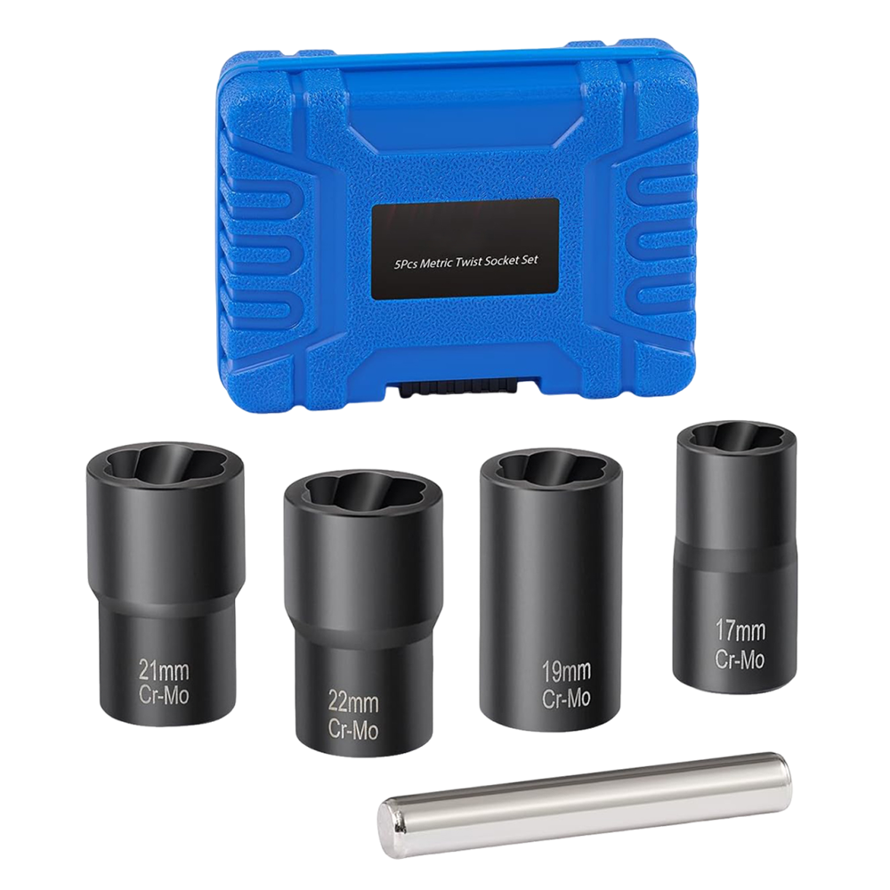 This lug nut remover saved me when I had a completely rounded bolt! The twist-grip technology really works - it bit right into the damaged nut and got it off with minimal effort. The included case keeps everything organized too. Just wish it came with a 23mm socket for my truck.
