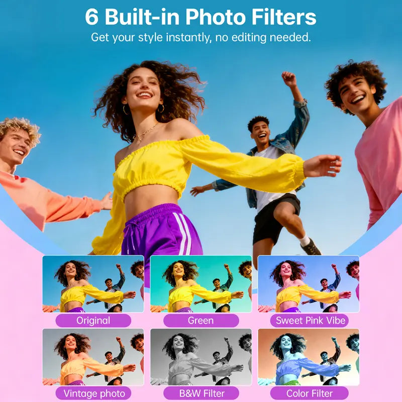 • Fun & gift-ready camera: An ideal Christmas or birthday gift for kids, vlog beginners, and instant party fun.