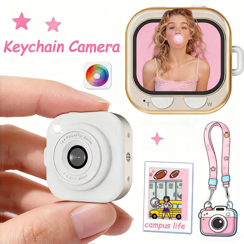 • Mini keychain design: Pocket-sized camera with a trendy Y2K retro look, easy to carry anywhere.