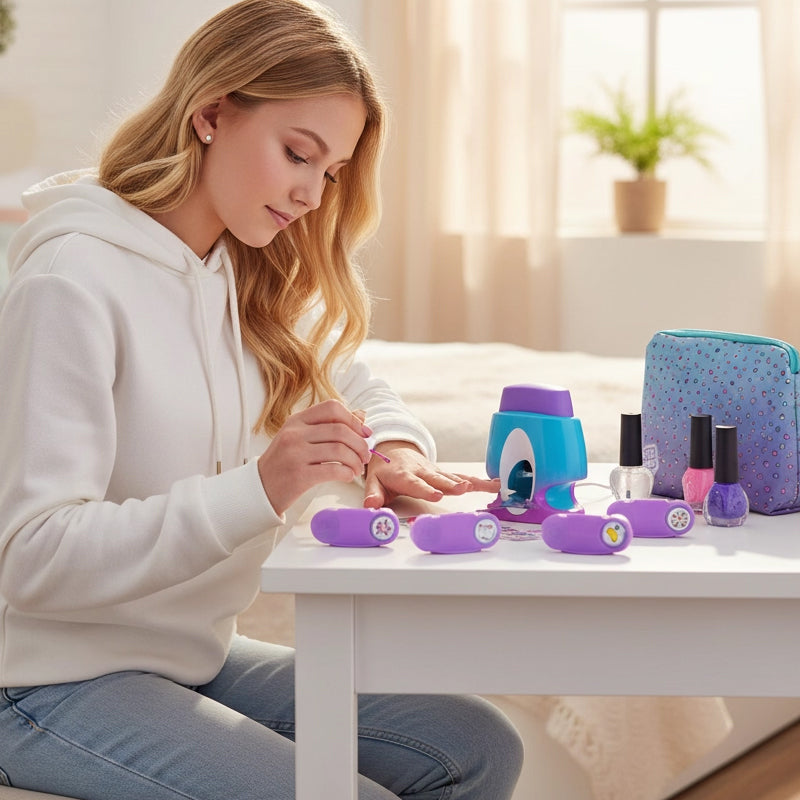 Bought for my salon's kids' services. Parents love the non-toxic polish (washes off with just water!) and kids go crazy for the unicorn. Pro tip: warm the stamper in your palms first for better ink pickup.