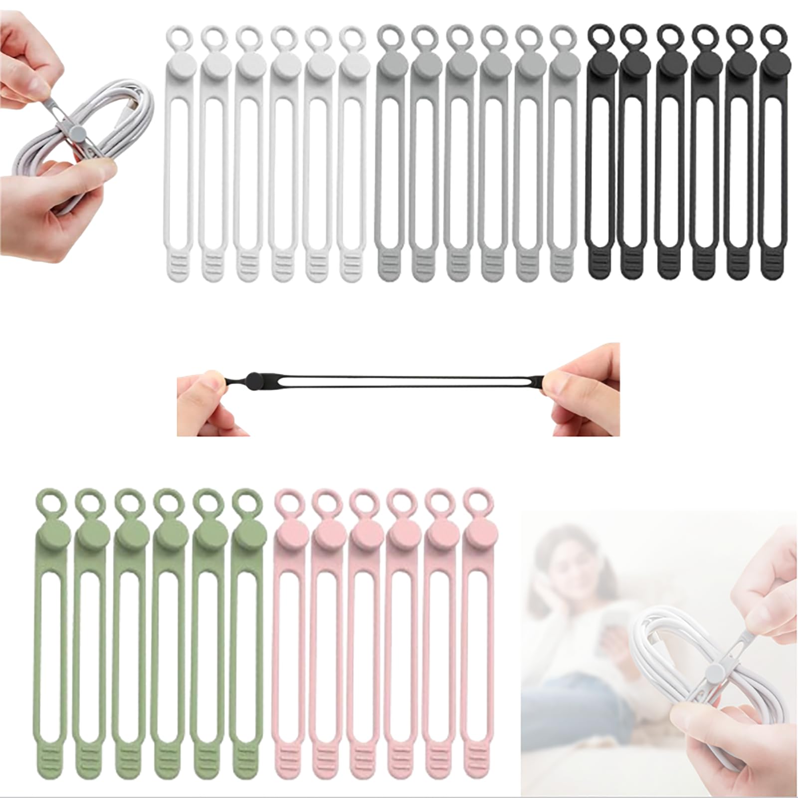 - Cord organizer: Our silicone cable organizer comes in 10/20/30 pack, 5 colors, allowing you to use the cord ties freely according to your preferences. If you are looking for a silicone cable belt, do not hesitate to buy cord ties.